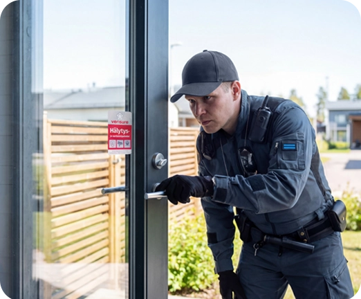 Verisuren hälytyskeskus välittää ajantasaiset tiedot hälytyksestä vartiointiliikkeelle, jonka edustaja tulee tarkistamaan hälytyksen. Verisure tekee tiivistä yhteistyötä alueellisten palveluntarjoajien kanssa, jotka suorittavat asiakaskohteidemme vartijakäynnit. Hätätilanteessa voit olla varma, että et jää ilman apua!